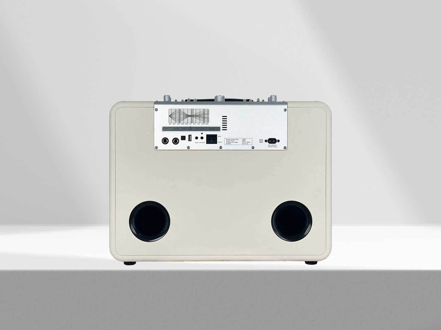 Powered by a robust 14.8V/8000mAh lithium battery for extended playtime, this vintage bluetooth speaker weighs just 15.9kg net (17.7kg gross) and packs into a compact 550*320*485mm box for easy transport. Its durable construction ensures reliability on the go, making it a top choice for events or home setups. Tailor the finishes and features to match your vision!